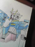 ↓指輪になる前の銀粘土と昨日描いたダブルオー